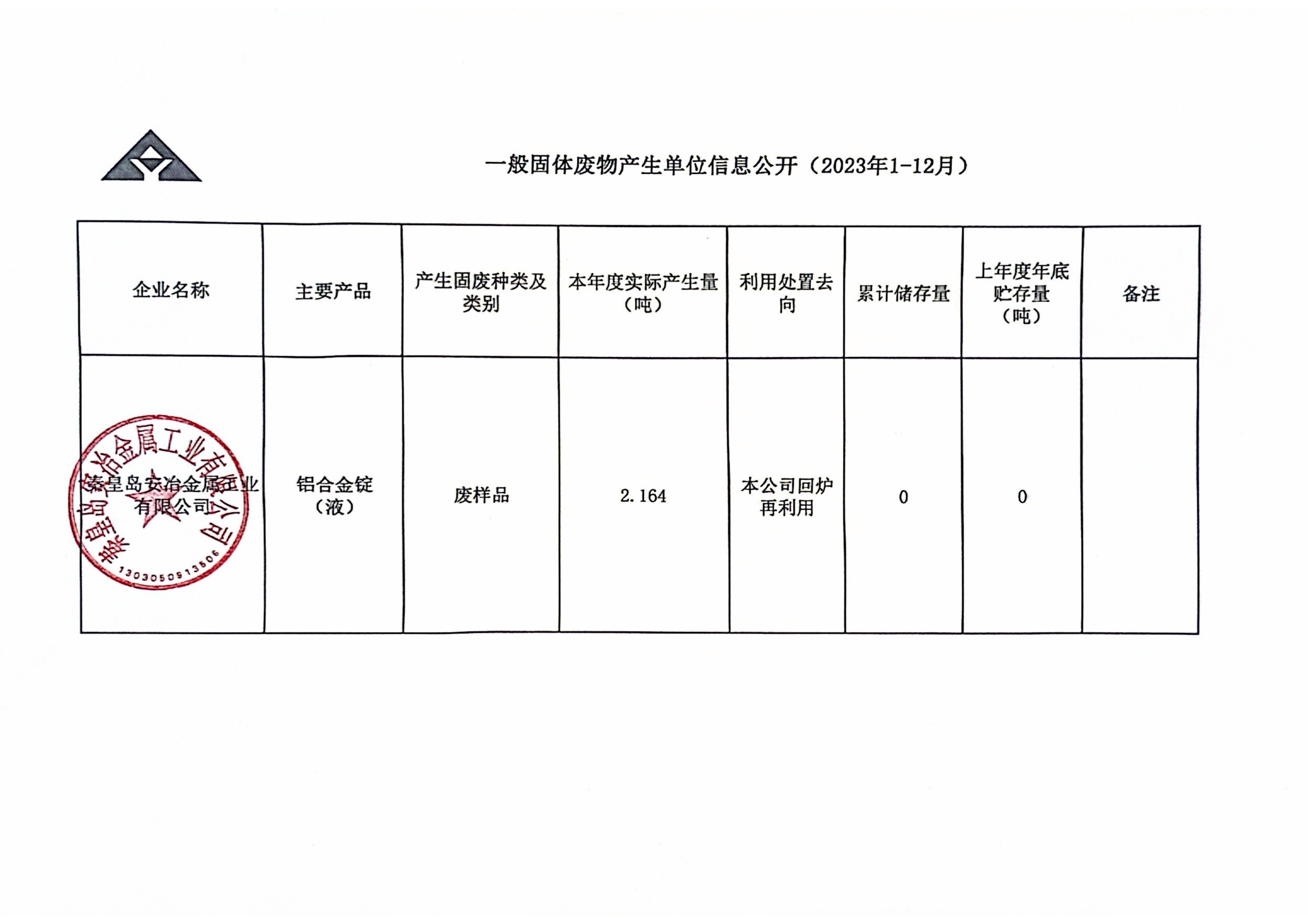 當(dāng)前位置:首頁(yè)-資訊中心-一般固體廢物產(chǎn)生單位信息公開(kāi)(2023年1-12月)
